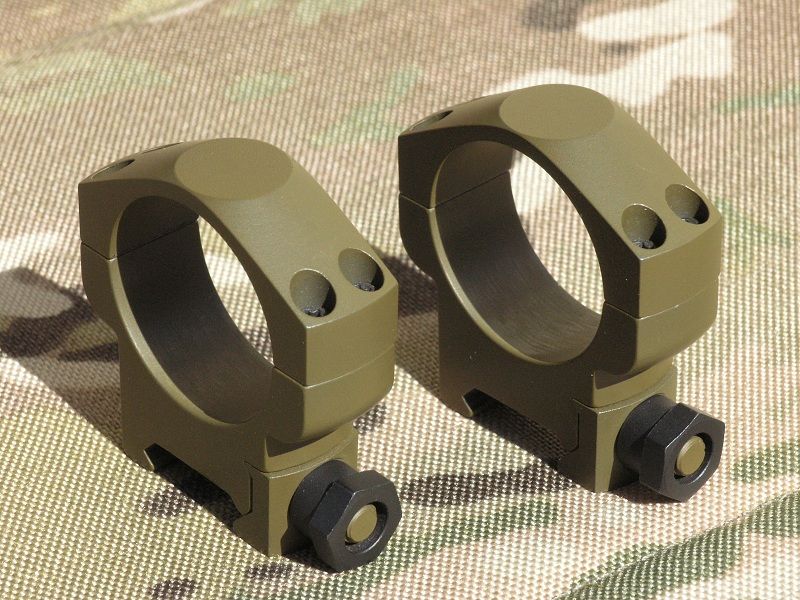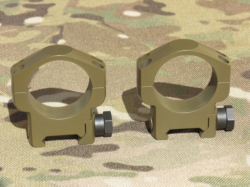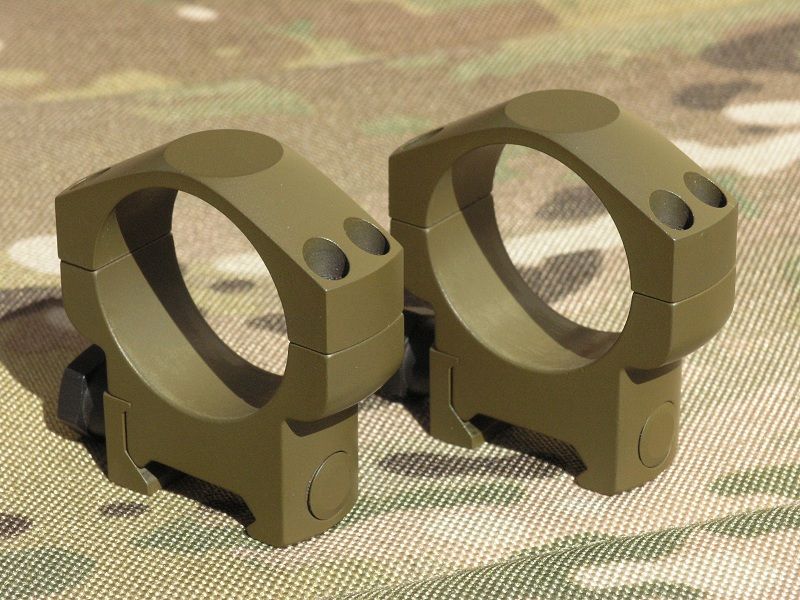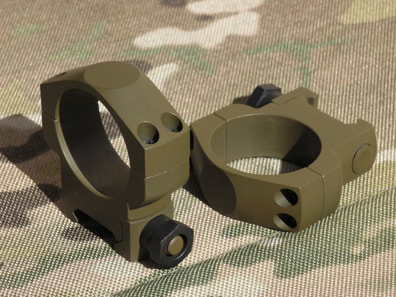 Leupold Mark 4 34mm High Rings (Leupold #59320, 1.06" top-of-Base to ring centerline) coated in "Tac Ops OD" Green-T with contrasting Black-T Nuts: