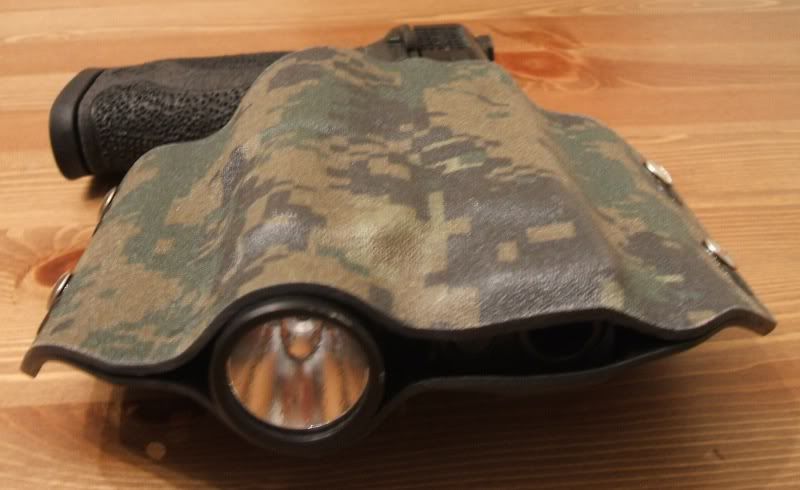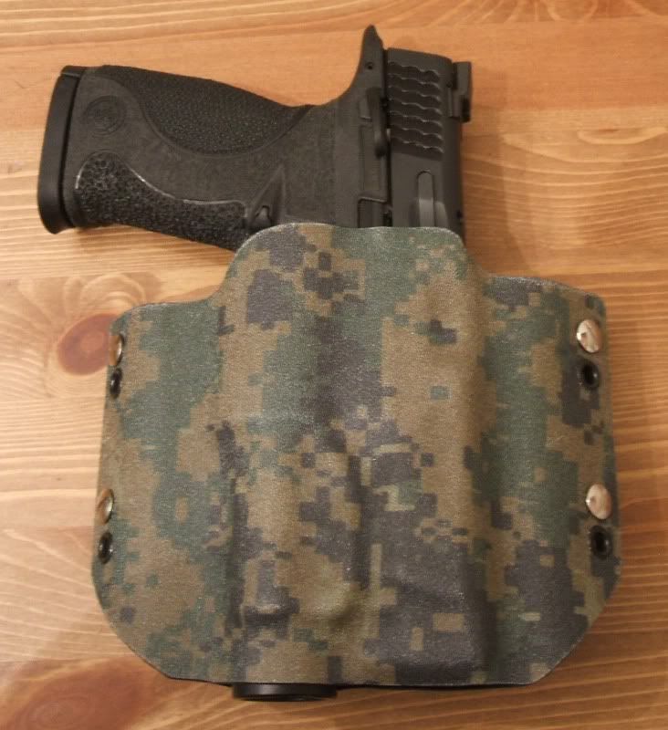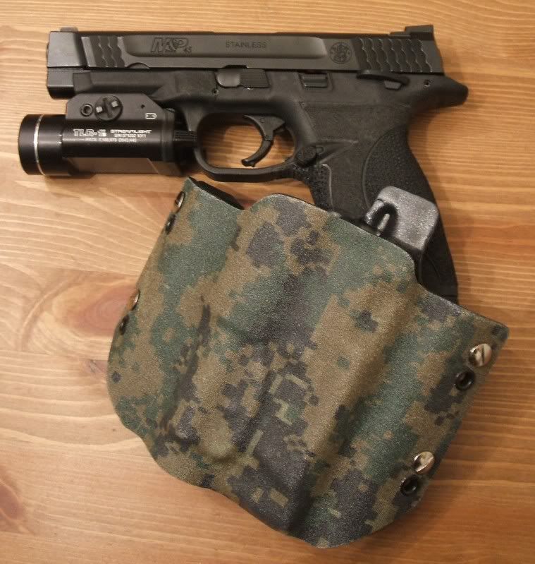 New forest digital camo kydex holster for an M&P .45ACP with a Streamlight TLR-1 or TLR-1s; It comes ready with 1.75" belt loops.