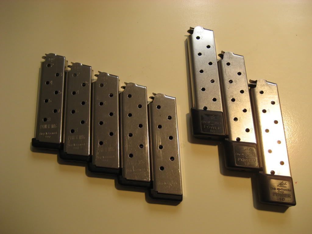 Very gently used and all in excellent condition. Five 8-Round Chip McCormick Power Mags, 3 10-Round Chip McCormick Power Mags