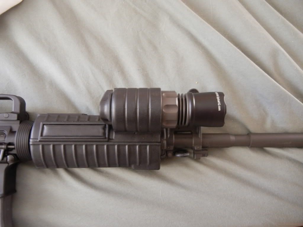 Its the Surefire M500 Carbine light. Like new, mounted and fired with but no damage or issues. Comes with standard P61 High output Lamp and a TK4 Led conversion head. These operate with one standard high output lamp and a dual low lumen led for navigation purposes.
