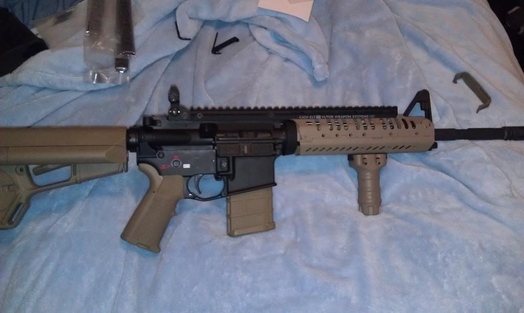 vltor casv-el in fde it has some slight marks in the paint, most of which were caused from the install and are not seen when on the rifle. comes with all hardware and rail sections, very nice rail. asking 200