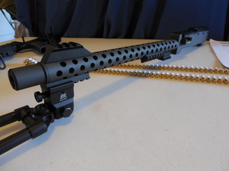 I run one of these with a GAT trigger activator (like the 10/22 BMF gatling gun crank) and it runs 500-600rpms easily. Everytime I am at Ben Avery people come up to watch me shoot. It gets more attention than the machine gunners. Coincidentally, the upper is made as a drop in for a full auto AR RR, RDIAS, or RLL. The upper is new and unfired. The lower is not included and for photo op only.