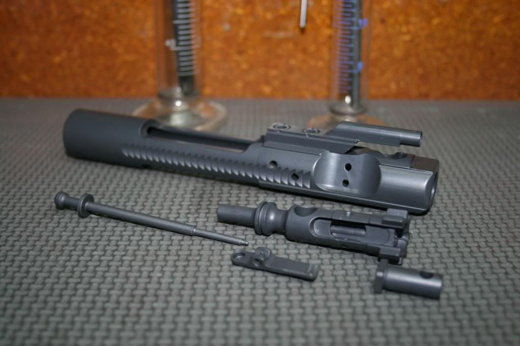 3) Brand New full Auto/M16 BCG with Micro Slick. This is a DPMS brand M16 BCG that was purchased directly from Brownells. This BCG comes with Brownells lifetime warranty. Our shop applied Micro Slick to this BCG to enhance its function. Micro Slick is dry film lubricant similar to nickel boron. Unlike nickel boron, Micro Slick can operate without any oil. You can read more about Micro Slick on our website (occustomcoating.com)