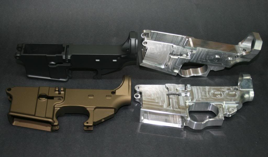 TR Enabling 80% Lowers on the Right & Rohg Lowers on the Left. The Rohg lowers were coated for display purposes: