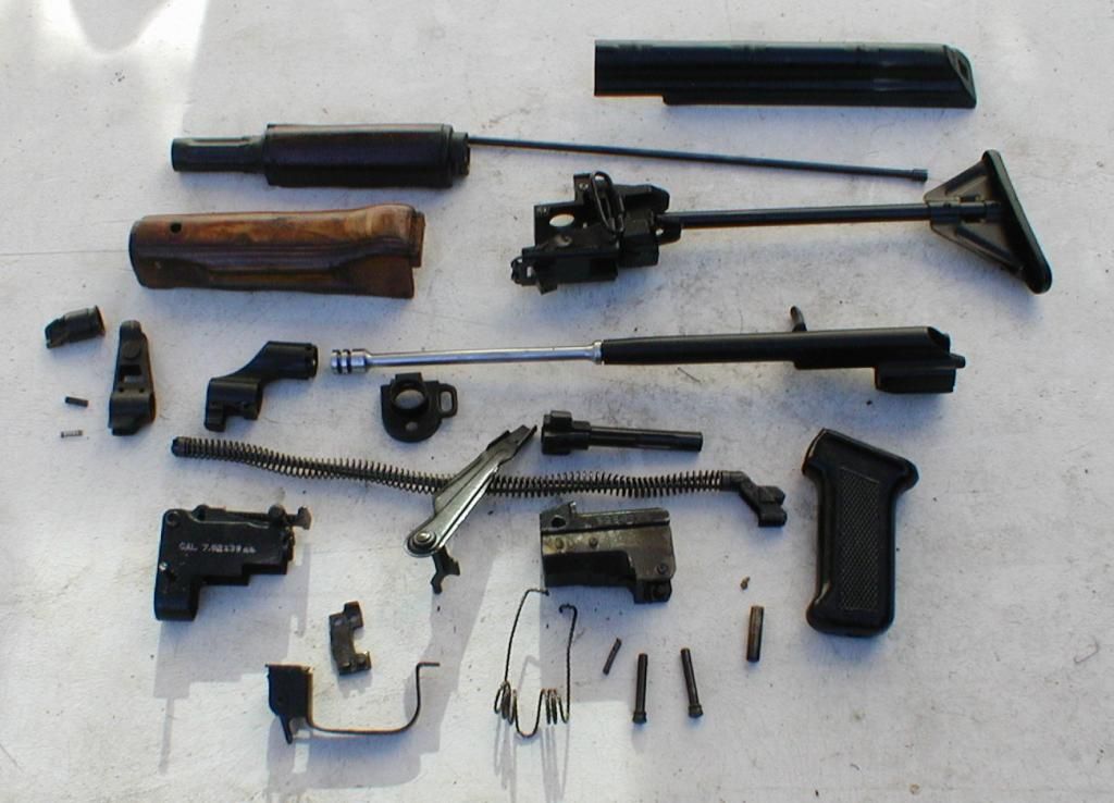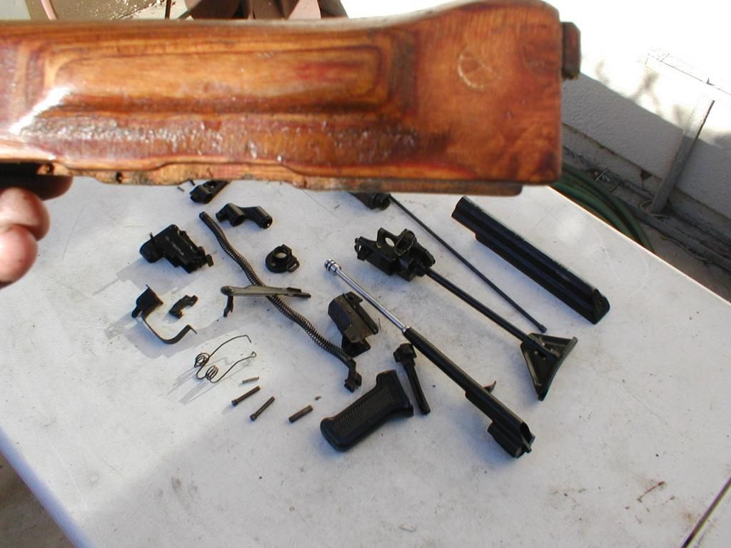 SPF to notyers Probably unissued, looks like new. Has matching numbers on bolt, carrier, trunion, and top cover. The recoil spring doesn't have any numbers stamped on it just some electro pencil marking. This kit has the desirable dark pistol grip and crutch folding stock combination. The wood looks good, really good but will look even better when all the grease is removed. $414 shipped (or $314 shipped without wood or buttstock) USPS Priority Mail, signature required, unless you choose otherwise. These kits are as close as you can get to a real Russian AK as the Russians gave them the equipment and built them the factory. If you don't like folding stocks you can sell this one as they are considered very desirable. You should get enough from the sale of this folding stock to buy a fixed stock, some mags, and some ammo! If you need a kit for a build party I can provide it with a barrel already installed ready to go and even with a receiver flat, rivets, US trigger group etc. If you crunch the numbers and factor in shipping for different parts and labor you will see my price is better than you would be able to do. Not to mention you can have everything at once the same day if you live in the O.C./L.A. area. I can also provide Romy fixed stocks or Bulgarian AK74 furniture.