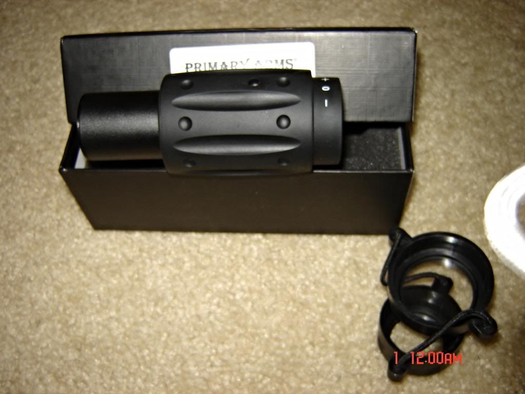 sold to 220 LNIB Primary Arms 3x Magnifier (long eye relief) with Butler Creek flip-up caps and original bikini cover caps - LNIB, original packaging $75