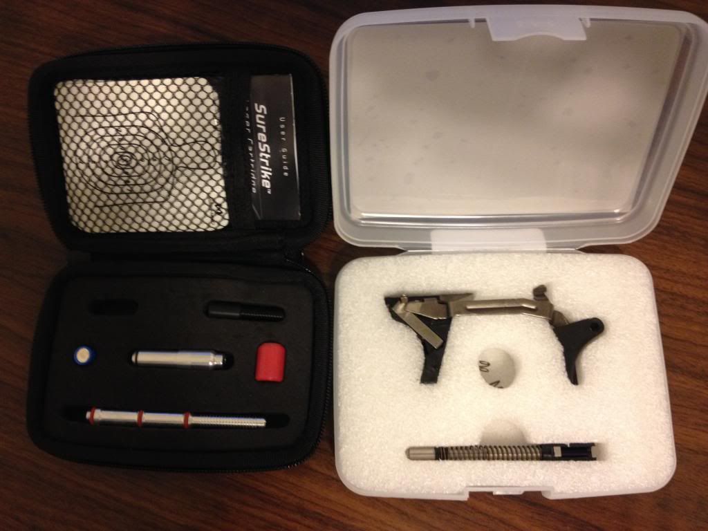 Trigger Reset Kit (fits 9mm, .357, .40 and .45 GAP. Longer barrelled guns such as the G34 will required an extension) with Sure Strike Magic Bullet Laser Ammo, fits 9mm.