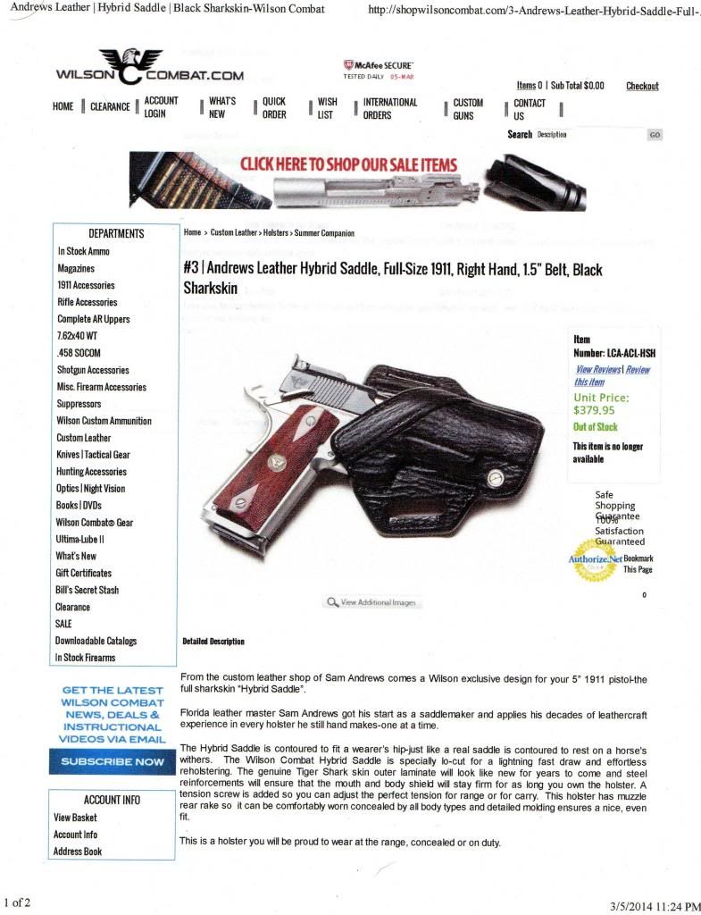 This is a gorgeous holster made with sharkskin by the famous holster maker Andrews leather, for Wilson Combat. This is no longer sold. This holster was $379, I have never holstered a gun or wore it on a belt. It has sat in my safe in a padded bag. I need to sell it for reason's, I really don't want to.