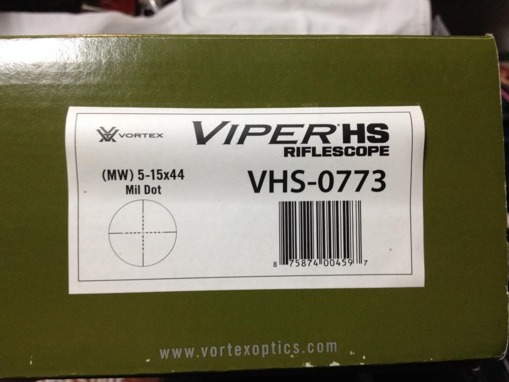 Vortex Viper HS Tactical 5-15x 44mm MidwayUSA Exclusive. Hard to find and no longer produced. Mil-dot reticle, matched with 1/10 mil click adjustments.