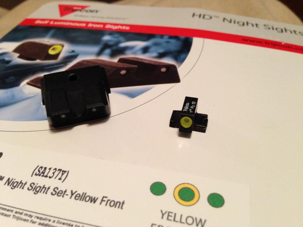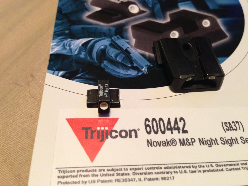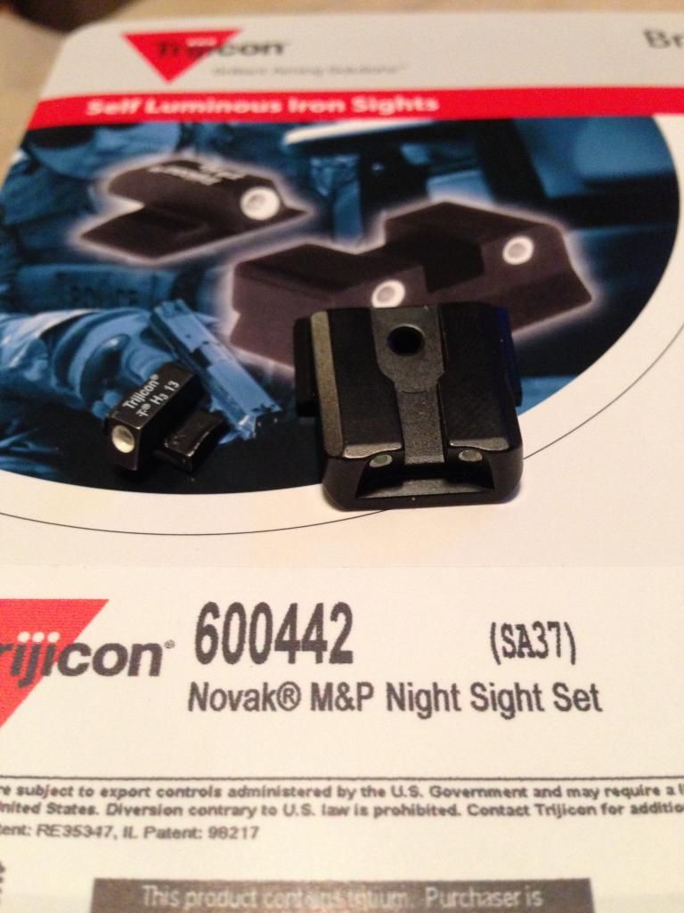 Two sets of night sights, both were mounted on my m&p9 and show a little wear from use as well as mounting. Both sets are bright and perfectly mountable.