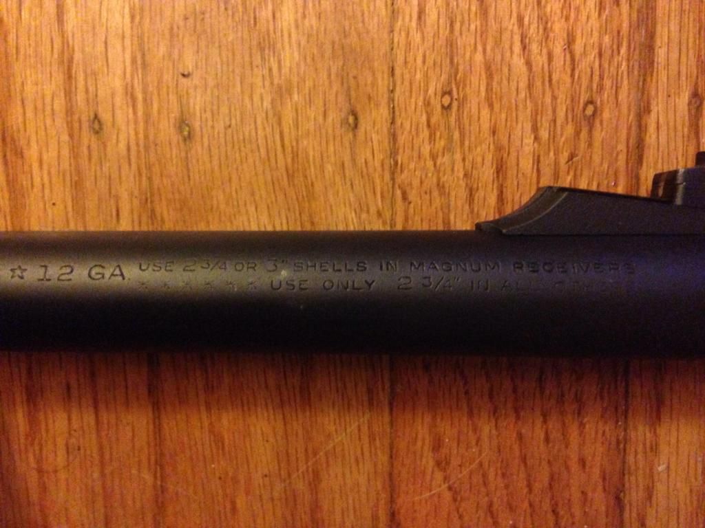 "12 GA Use 2 3/4" or 3" shells in magnum receivers, use only 2 3/4" in all others."