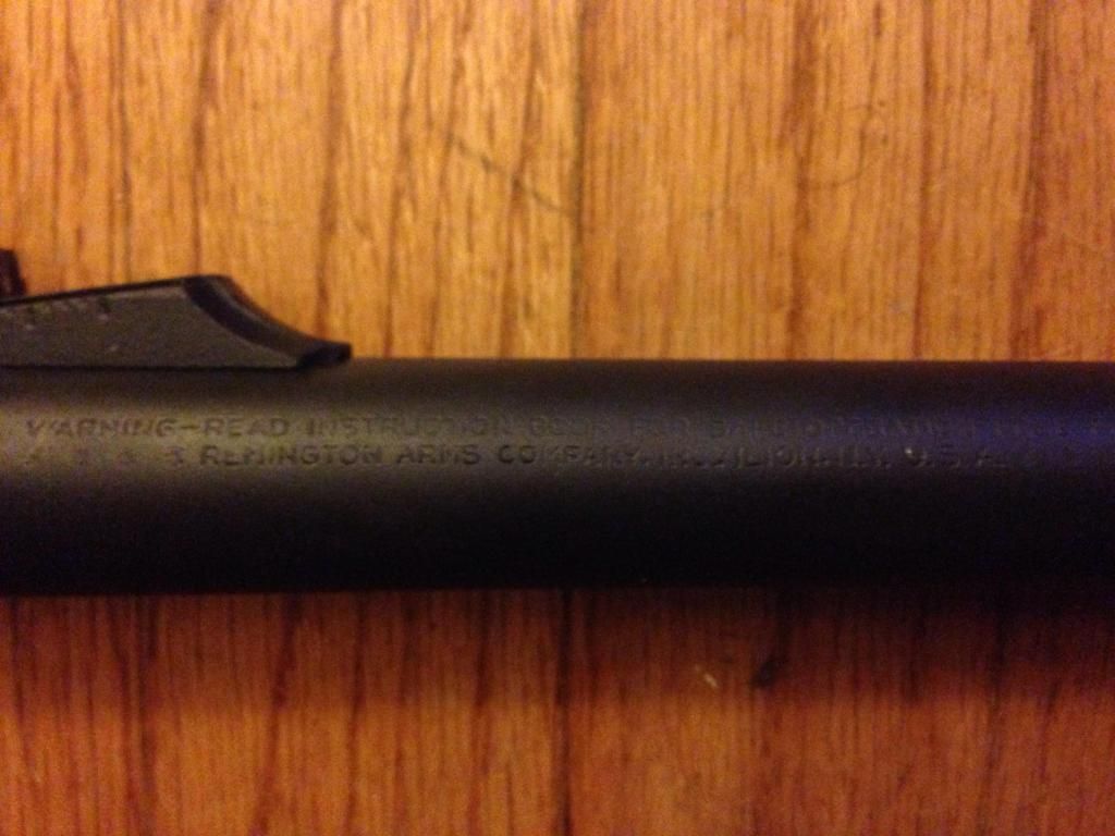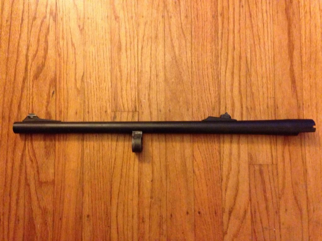 Looking to sell a Remington 870 Police barrel. 12 gauge, parkerized, 20", improved cylinder choke, ball detent, with fully adjustable rifle sights. This was taken off of an 870 Police Magnum that was a departmental trade in. Based on the serial number on the receiver, I believe the gun was from a 2007 production run. Unknown round count, though the gun was clearly well maintained and in excellent overall condition. The barrel itself is in excellent condition, no major blemishes, bore is nice and shiny, very slight wear marks on the finish. Couldn't get very good pictures of all of the markings on the barrel, so there are descriptions with each picture below.