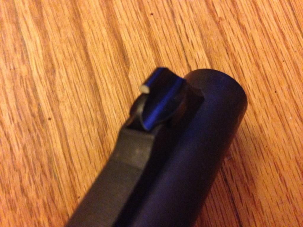 Rear sight with adjustable elevation and windage as well as witness marks from whichever department this originally came from.