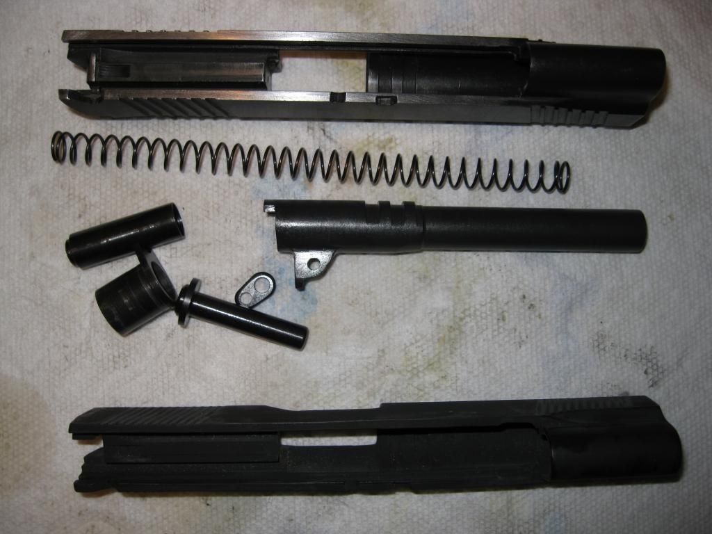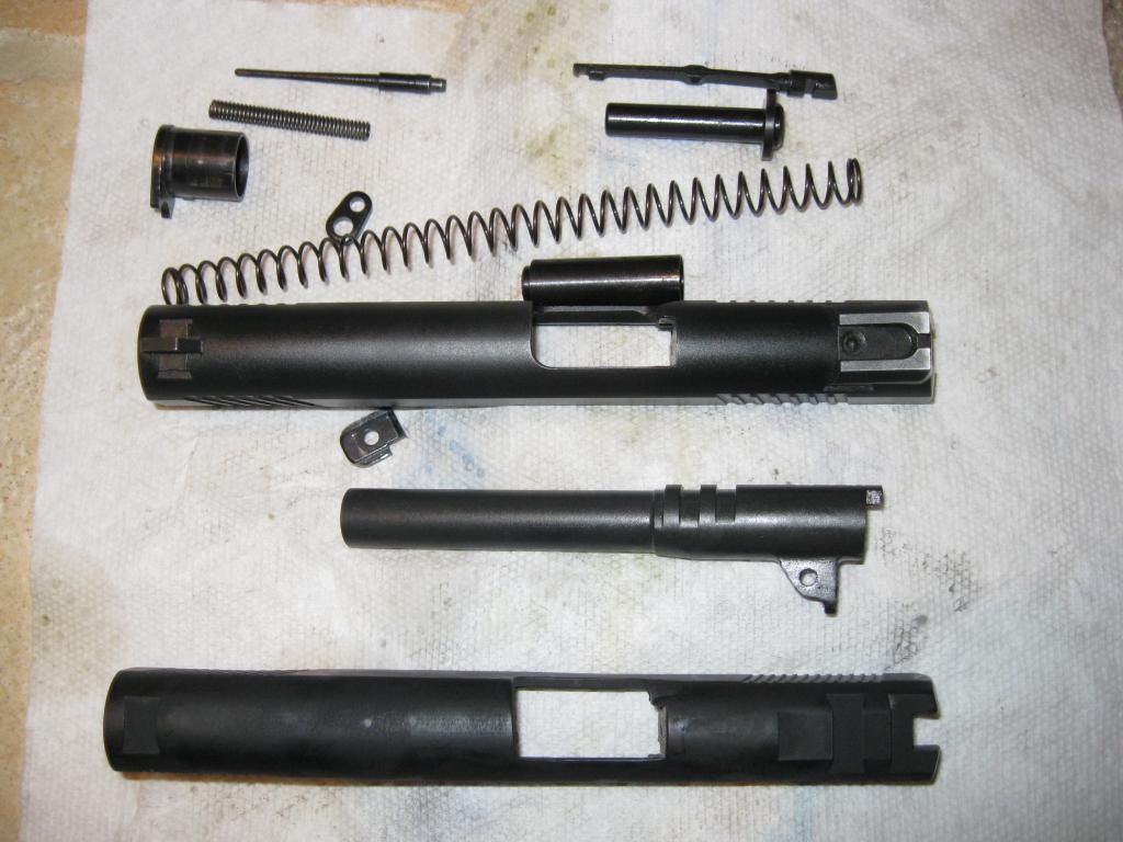 Top: 1911 slide kit from Sarco. These are my extra leftover parts and is complete except for the barrel link pin. Used for sizing, so the finish is rubbed off in some places. Sold as-is for$150 SPF plus shipping