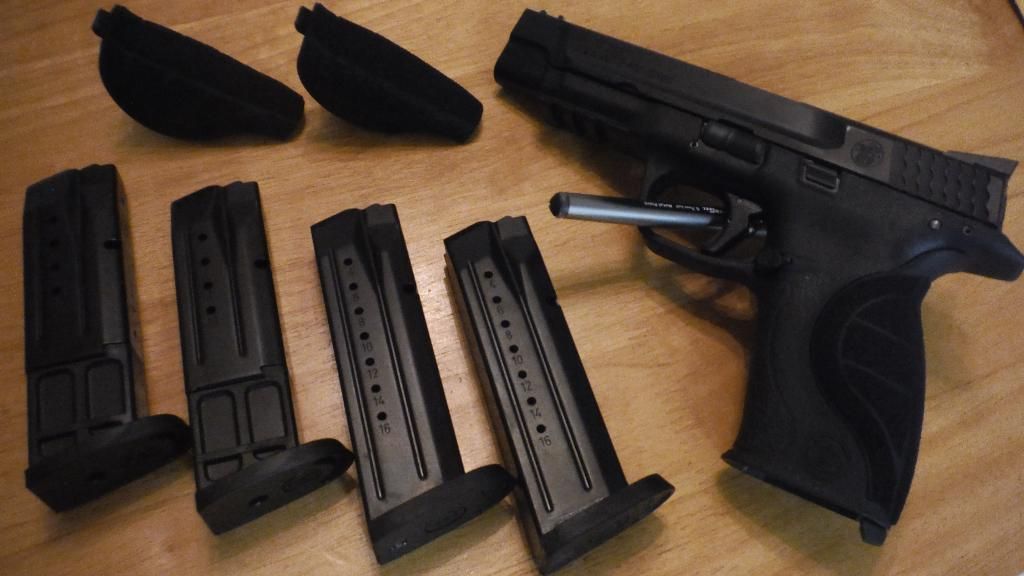 Other info: This has a factory test fire date of November 21, 2014. Put 200 rounds through it. Zero issues. Installed Apex RAM (Makes for a very nice trigger reset), the Apex Action Enhancement trigger, and the Apex fully machined sear. The trigger on this thing is sweet. Will also include the original trigger. Will also include a large pistol size Bore Store pistol case. Comes with S&W case with the 3 different size backstraps, 4 magazines (2 10 rounders, 2 17s blocked to 10, all paperwork, lock, and test fire round.