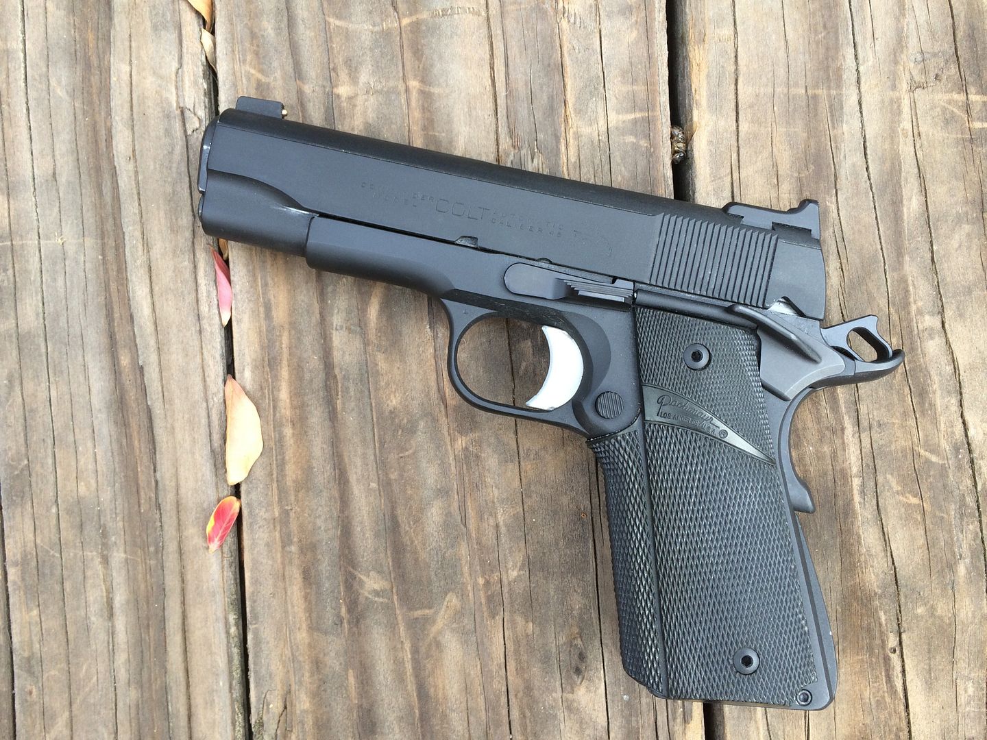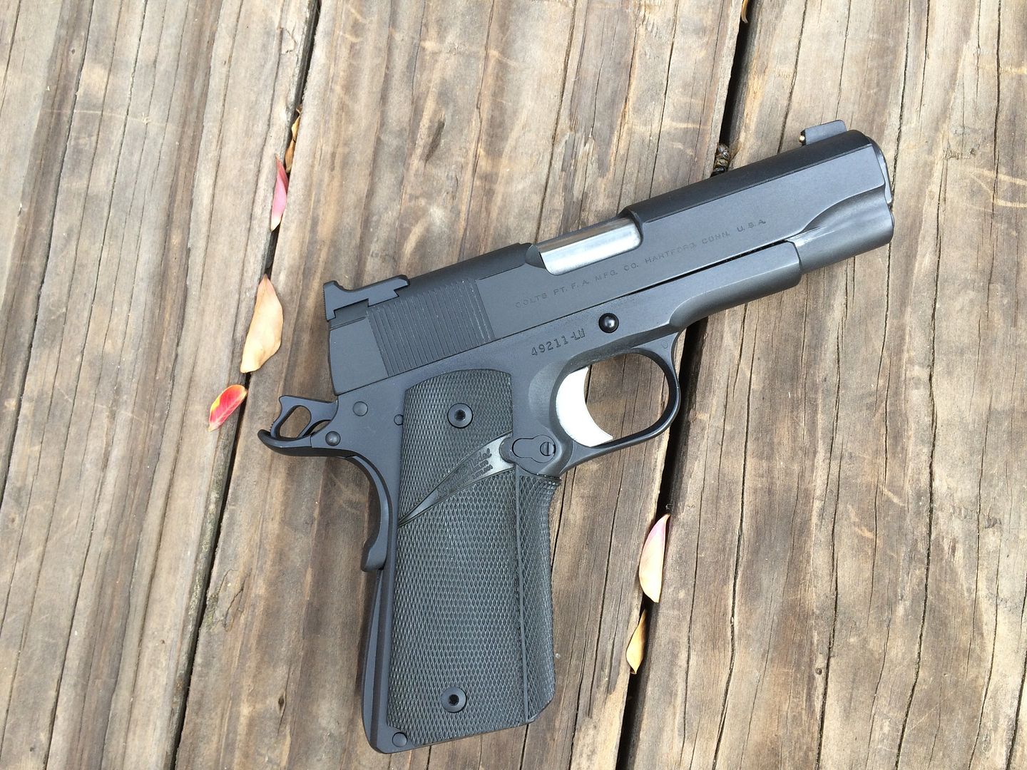 First up I have a Colt Lightweight Commander made in 1967 that was recently customized by Jim Garthwaite. It has a Kart ramped barrel, Heinie rear sight and gold bead front, and all the other trimmings. The front strap is also serrated under the vintage Pachmayr grips. The build sheet will be included with the gun. $2800