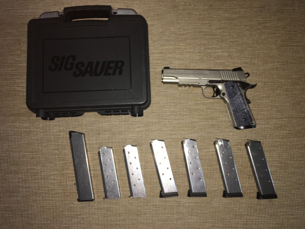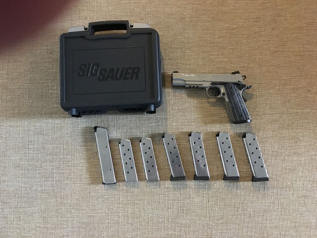 with approximately 500 rounds through the gun. For sale by original owner. The package comes with the gun, four 8rd Sig mags, 2 chip mccormick mags and 10 rd wilson combat mag and case. Has custom VZ grips installed and will also include factory grips.
