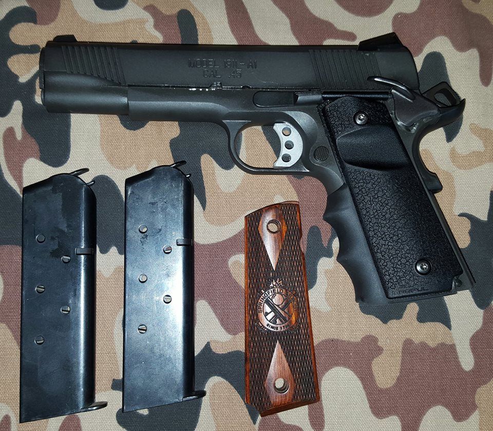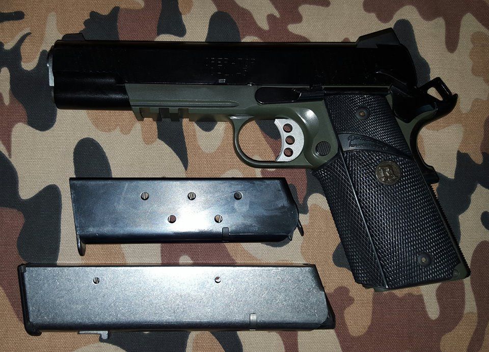 Other info: 1911 Full Size, 45ACP, 5" Barrel, Steel Frame, Akote Slide, OD Green Finish, Tritium Night Sights, Ambidextrous Safety Levers, Pachmayr Rubber Grips, 2 Magazines 1/7rd Factory & 1/10rd Wilson Combat, Belt Holster, Double Magazine Pouch. For more info please call or text at 209 610 7222.