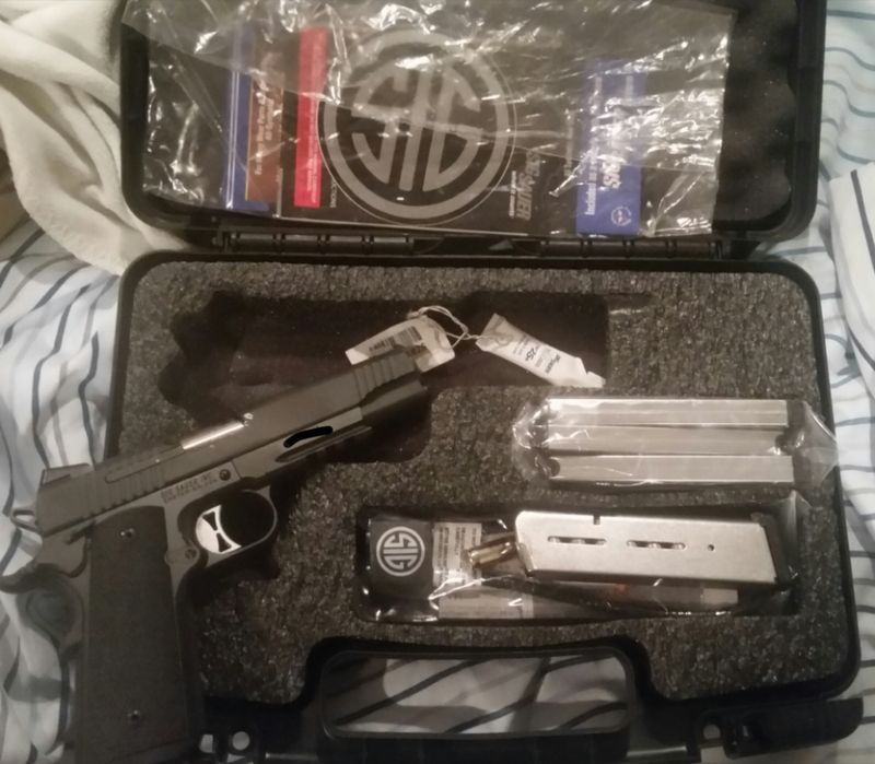 Other info: like new, off roster Sig 1911 TACOPS, comes with 4 eight round mags. Has 100 rounds through the pipe.