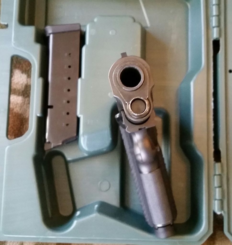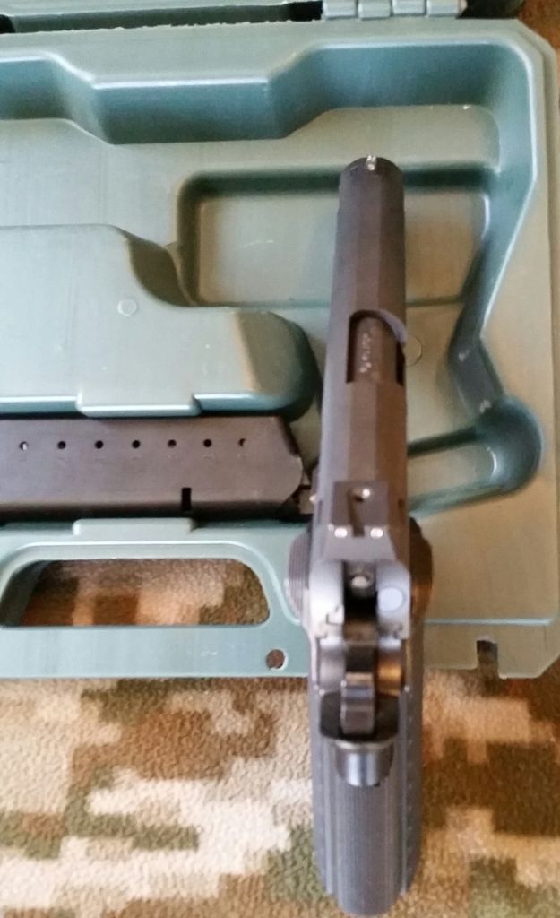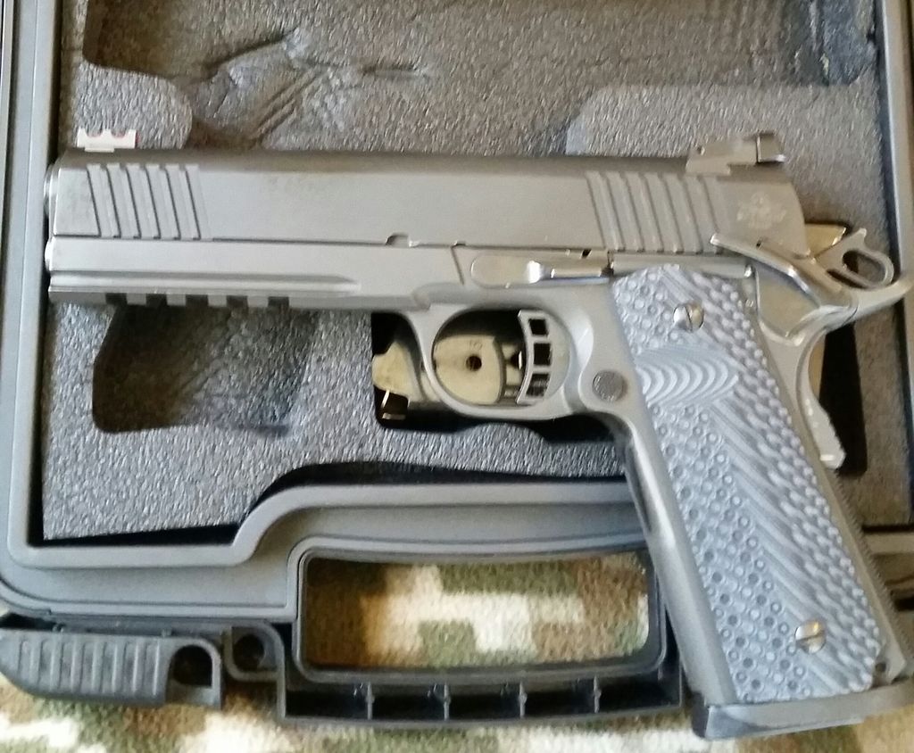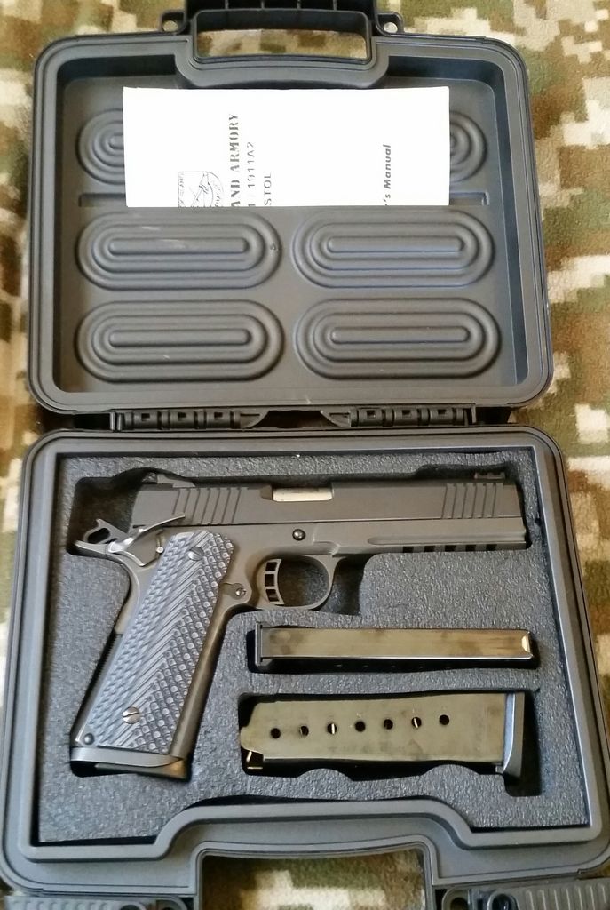 Rock Island Armory 2011 VZ full rail tactical single stack in 45acp, has upgrades, 10-8 extended slide stop, EGW HD extractor, fit and blended, trigger undercut. Work was done by a retired US ARMY armorer and looks great, feels great. I was going to have the gun refinished but haven't, I now have a full rail Springfield Armory so I'm thinning the herd. Has VZ Operator 2 grips, factory cut for the magwell, true Dove tail cut sights with adjustable rear and fiber optic front sight. No problems, less than 500rds. Comes with factory case and 3 factory 8rd mags. No rattle, no idiot scratch.