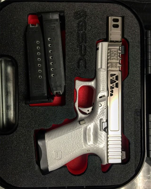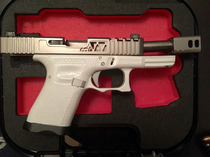 Ultra Custom Glock 19, the gun has been shot under 50 rounds. Because of the compensator the gun requires 147gr ammo to fully function (needs more umph for the slide to go all the way back). There is almost nothing left from the original Glock on this "Glock" here is the list and prices: