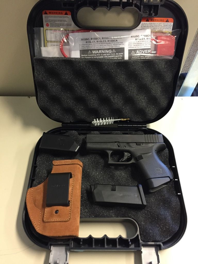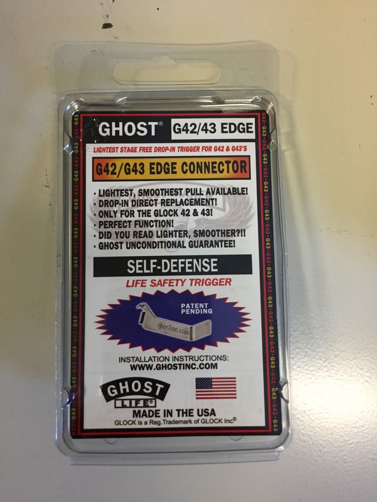 Other info: Comes with Ghost Edge Connector installed, stock connector also included, two magazines, IWB holster, and typical Glock case. Great handgun, LNIB, only 100 rounds fired. Just too small for my hands.