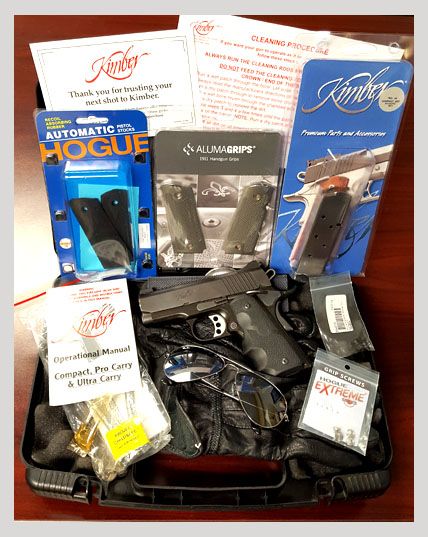 Comes w/ Night Sights, Original Box & Papers, Original Oil/Lube. 1 blue original Mag & 1 original Kimber SS Mag. 3 grips; 1 original rubber 1911 compact grip, 1 Hogue rap around finger grooves grip, 1 Alumagrips slimline w/bushings & low profile Allen/Hex screws: If you have any question, feel free to send me a message anytime.