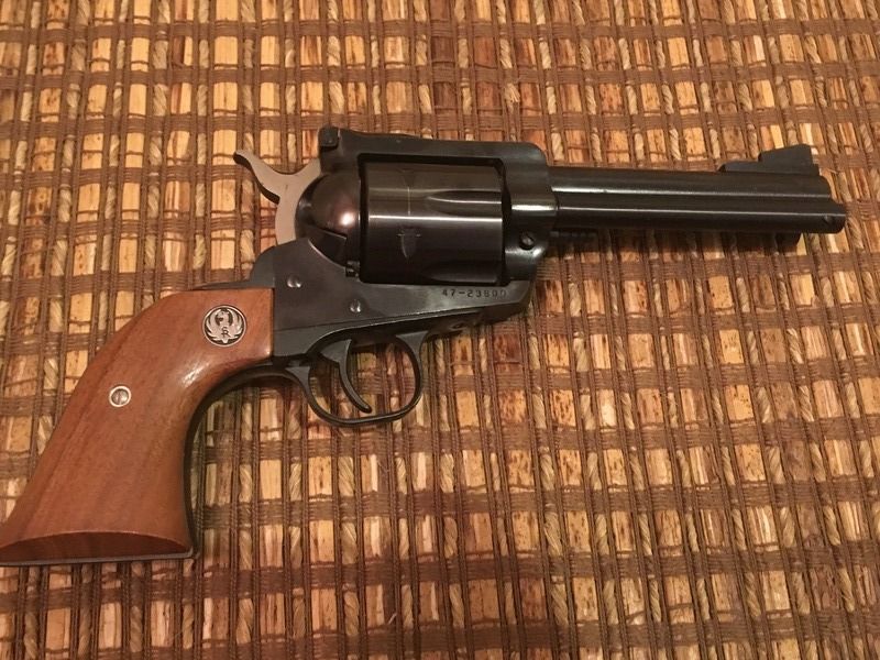 The first is a Ruger Blackhawk in .41 mag. It has a 4 5/8 inch barrel. Bought this new years ago and maybe put 100 rounds through it. Sorry no box. $450 OBO
