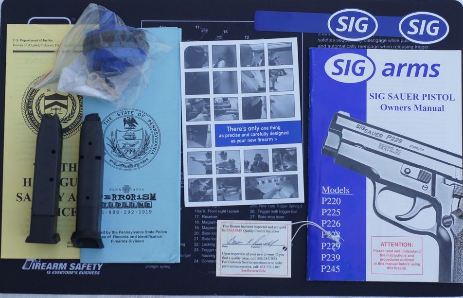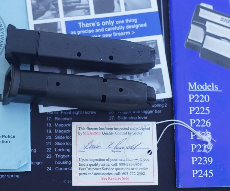 Other info: German P228 so no proof marks, 1 10 round zipper back mag, round count is exactly 50, rails look good with some minor wear. Never had a failure, Has box, manual, OG lock and other assorted stuff from the factory, A couple wolf springs, spare grip screws, I even have the OG plastic bags that the pistol came with.