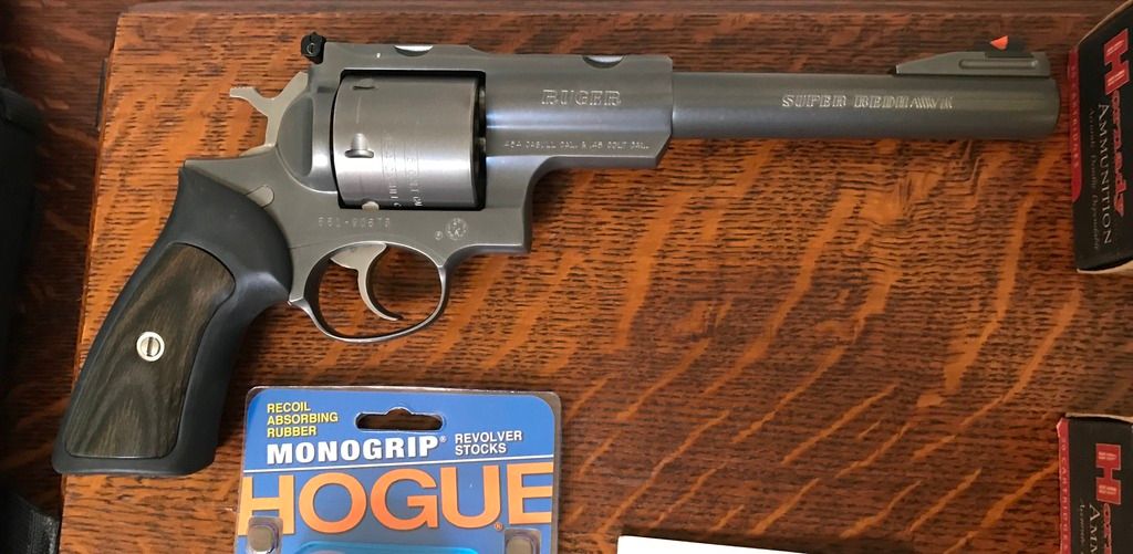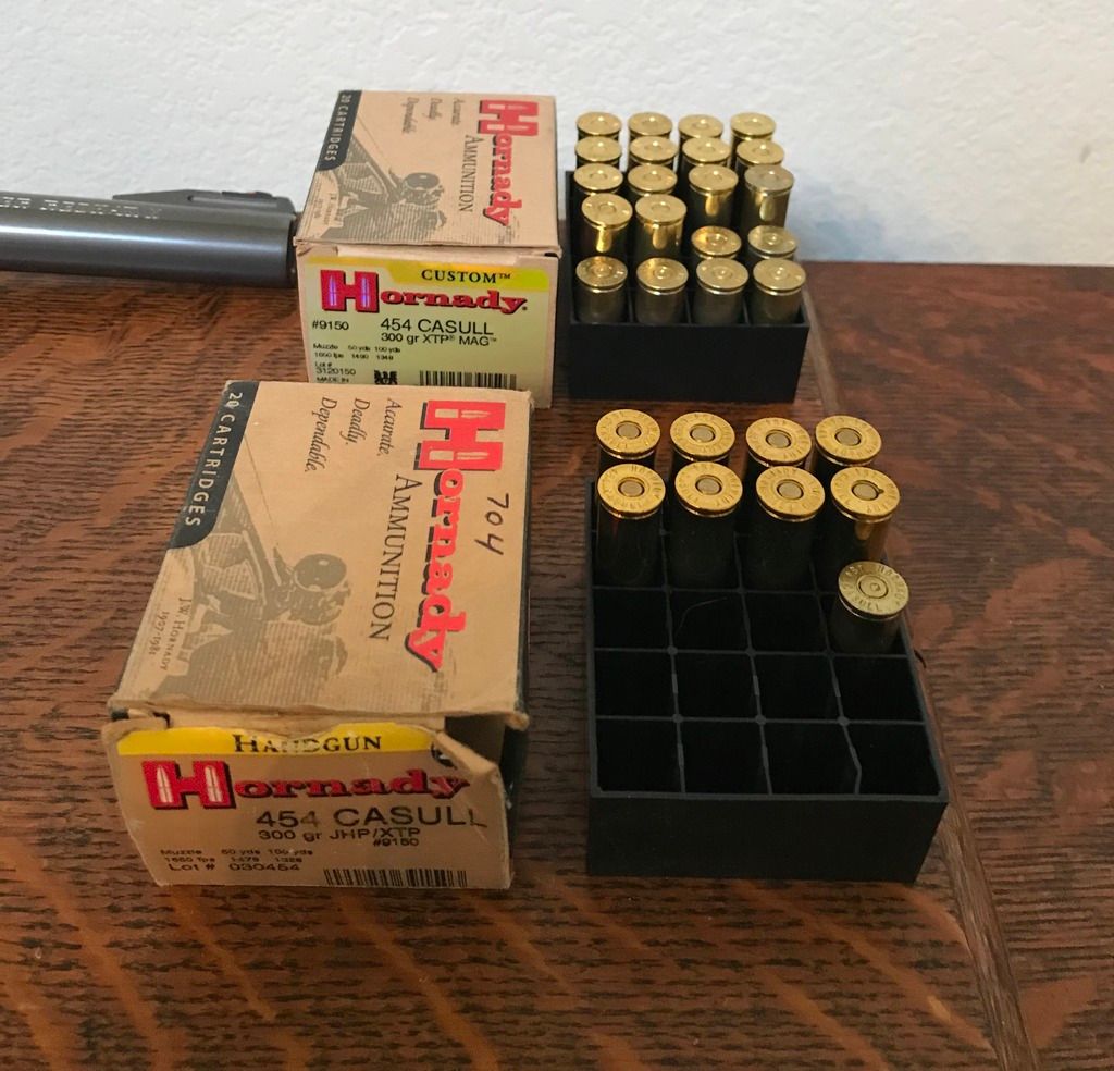Other info: Maybe 100 rounds fired. Bright bore, no issues other than a slight turning ring on the cylinder. Includes chest holster, original scope rings, aftermarket grips, few rounds of ammo & some brass.