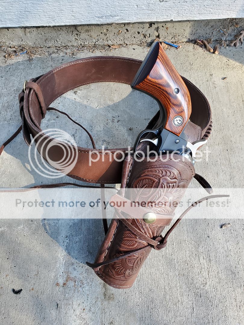 Ruger single six blued model number 0629. It's a convertible 22. Comes with a 22lr cylinder and a 22 mag cylinder. Rarely used the 22 mag cylinder. Probably about 50 rounds though it with 22 mag and about 200 rounds with 22lr. It came with plastic grips but I installed some ruger wood grips. Looks very nice. Also comes with a handmade leather holster and gun belt. Fits some one with a 30inch waist.