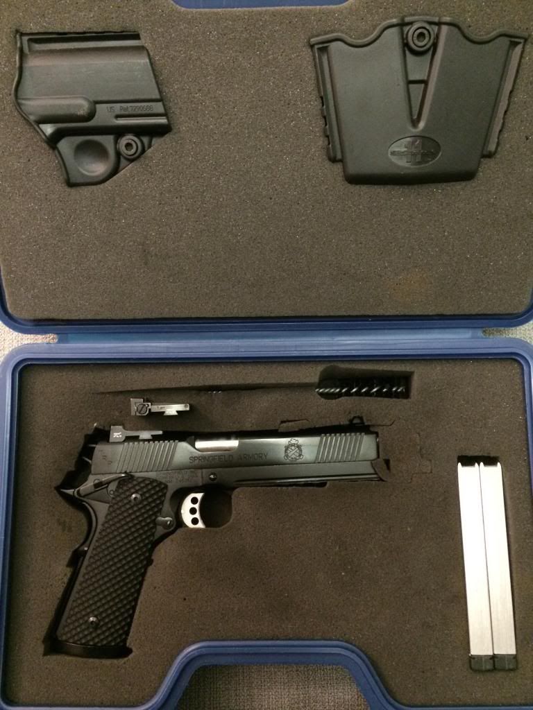 Only selling as I am relocating out of state and buying a house. Comes with Safariland holster (flat earth) and Raven concealment holster (black). Both holsters are made for this gun with the Surefire X300 (non-ultra) light. Gun was field stripped, inspected, lubricated with Slip 2000 EWBG and brand new Wolff recoil and firing pin springs were installed by the 1911 gunsmith at US Firearms Co. in Sunnyvale <100 rounds ago. Shoots like a dream.