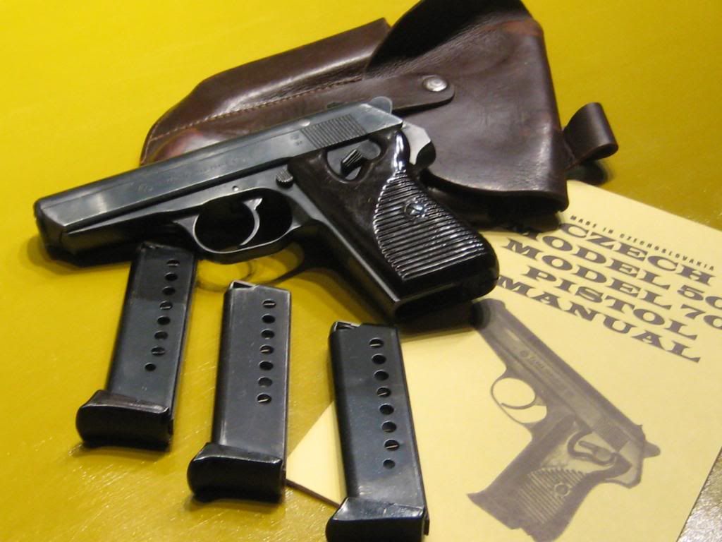 Early CZ50 from 1951. The trigger has been smoothed and the decocker/safety was replaced last November, along with the firing system. It has a new sear, new hammer, new safety and new trigger bar. The bore and chamber are in good condition. Gun comes with a period holster, three magazines and manual.