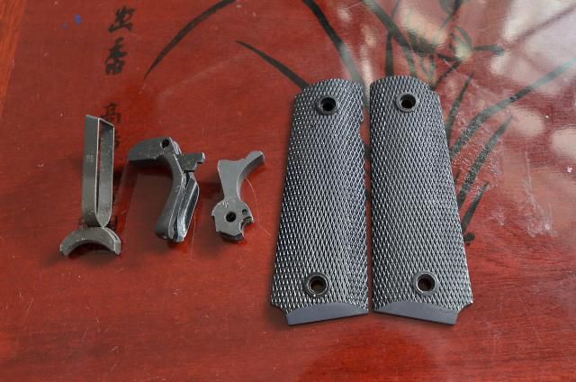 Other info: For sale is an excellent condition SA 1911 MilSpec in parkerized finish, with original factory magazine and two sets of grips. installed from the SA custom shop includes national match adjustable trigger, high ride beavertail grip safety, and skeletonized delta hammer, complete with documentation from SA custom shop. will include the original trigger, grip safety and hammer. only 250 rds thru her, flawless operation.