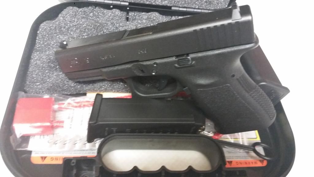 Little used Glock 19. I don't think it ever even made it to 300 rds. It has been sitting for the last 8 months because I have had no time on my hands. Anyway I really hate to sell it but there are just too many things breaking around the house at once. I have done the 25 cent trigger mod but otherwise it is stock. Sorry for the terrible pics but the computer is among the things that died on me so I can't upload pics from the regular camera