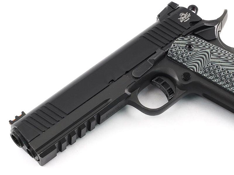 Make: Rock Island Armory 2011; full rail 1911 single stack with adjustable sights, front fiberobtic sight and magwell. Will also come with VZ grips.