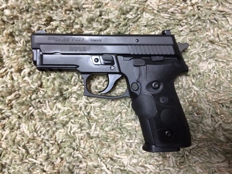 1. SIG P229R (40 caliber) handgun with night sites. Gun comes with Crimson Trace laser grips. Gun has approximately 75 rounds through it and is like new, only went to range on one outing. Crimson Trace grips were mounted on gun, however never used at range. So they are like new along with gun. Comes with box and accessories. $900