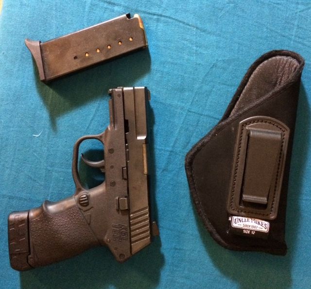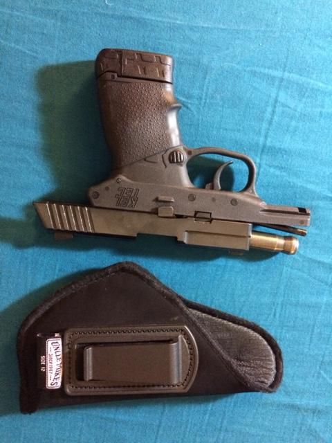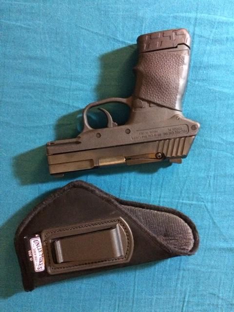 Other info: Approx. 100 rounds shot through it. Never had a malfunction. Polished feed ramp. Comes with short 7 round mag, extended 8 round mag, IWB holster and Hogue Mini grip sleeve pictured. PM with any questions