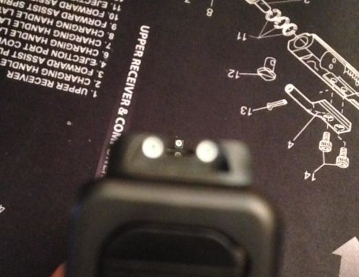 I have had trijicon novak 3 dot night sights installed (by Trijicon) to get as close to a 1911 as possible. They may look like a simple white dot in the photos, but they are tritium sights and very bright. The sights alone are $150 (sans tax and shipping/installation). Also, trigger work done with the pre travel shortened significantly (fixed) and the over travel also reduced (adjustable). Trigger guard rounded with a groove for improved purchase on the grip. Finger grooves removed and tree bark stippling of the "front strap". Includes 2 magazines. No case, but I will throw in 150 rounds of 180GR SWC ammo to more than make up for the lack of the plastic case.
