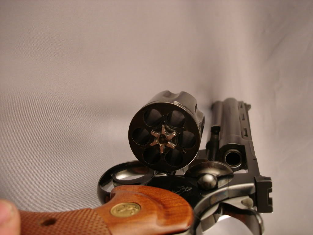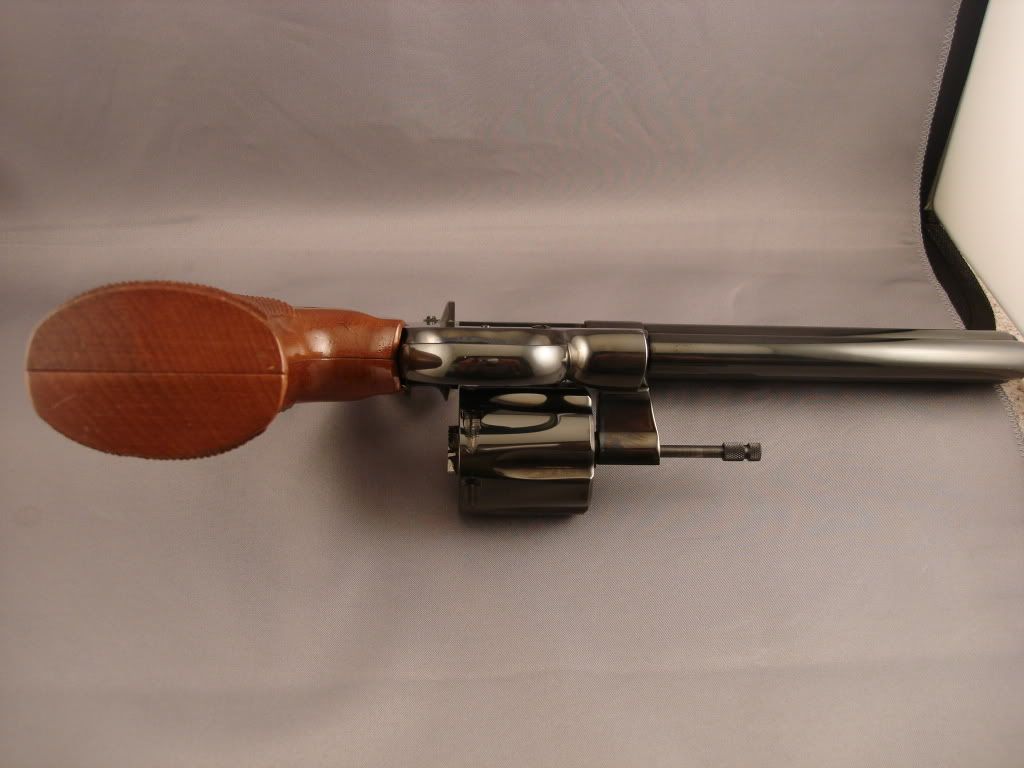 I took it to the range once. The guy I bought it from inherited it from his father and asserted it just stayed in the safe. From the shellplate it doens't look like much went down the barrel. Very very faint turnline (limited to the cylinder notches) and a easily missed 1/8th slight blue wear at the end of the muzzle that I believe is from cleaning since the gun was obviously never holstered (tried to take a photo but it just looks shiny). Smudge marks are from my fingers. The finish is immaculate & from when they still did things right. Pristine grips.