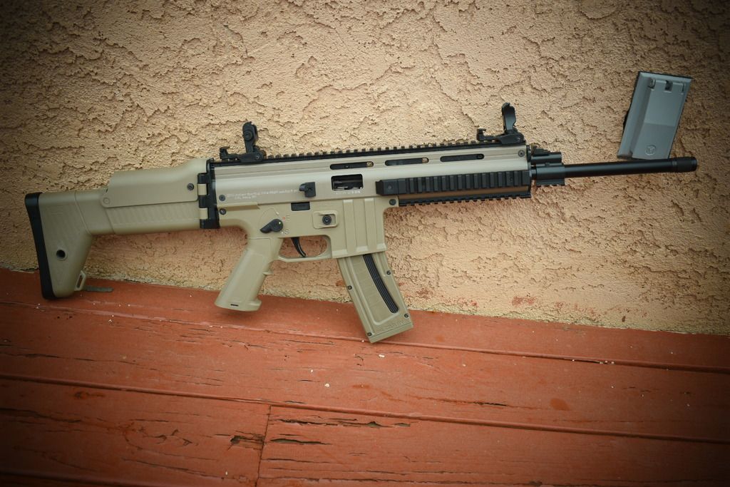 Up for sale is a "like new" unfired ISSC MK22 SCAR clone in Desert Tan. I say "like new" because I threw out the box so it is not "BNIB" even though I have never fired it and it has spent it's whole life just sitting in the safe. This was an impulse buy for me because it looked like a cool rifle and had some great reviews.. but I just never got around to shooting it as I really don't shoot much .22lr and my range time always ends up being dedicated to something else. The gun is in excellent cosmetic and mechanical condition, no dings, dents or scratches anywhere. It has a 3 position stock with adjustable cheek. The folding stock is pinned from the factory but there are videos and guides showing how to convert these very easily. It comes with fully adjustable folding iron sights that also have a dual cut rear sight for quickly engaging at different distances without the need for adjustment (Think firing folded as a pistol then extending the stock for a quick long range shot). Rear sight also has a quick folding rear aperture so you can choose between a large hole or small hole. Charging handle is adjustable to 6 different positions (3 on left 3 on right). Comes with one full size 10/22 factory magazine.