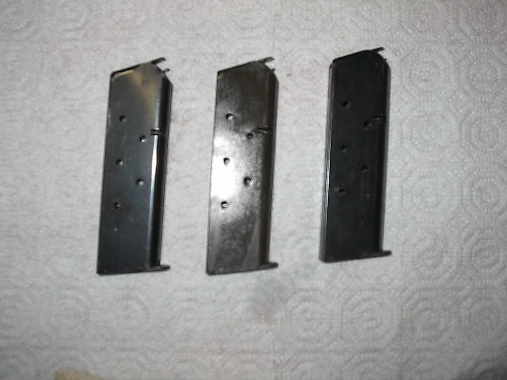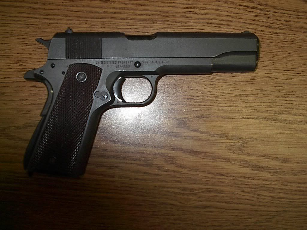 This .45 was brought back from the South Pacific by my Dad who was a P-38 pilot. Serial number 2142113. The guys at Turners gun shop in Long Beach said it was in at least an "80%" condition. Sale includes original shoulder holster and three magazines [I don't know whether the magazines are original or not]. I'm asking $1,800 OBO. Wouldn't sell it in a million years but an emergency forces me to do it as soon as possible. If a buyer offers to resell it back to me within a year at $1,000 profit for them should I be in a position to buy it back I will consider that positively when I consider any offers.