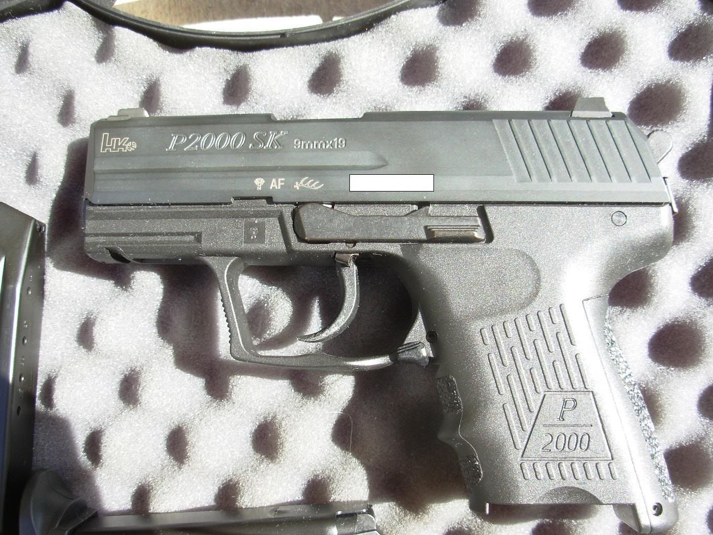 I got a HK P2000sk in 9mm DA/SA and decocker with a total of about 150 rounds fired for sale. Comes with everything seen in the picture: the box, two 10 rounds magazines, a hk gun lock as well the interchangable back strap. The Tritium Night Sight were factory installed and still got a decade of glow in them.