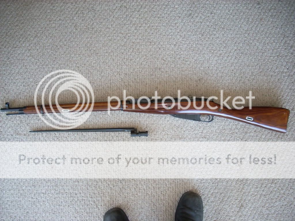 This is one of the nice laminated stock nagants that big 5 is selling for $180-ish, ex sales tax & dros. Bright sharp bore, from top to bottom all matching, even the separate bolt parts match. Smooth action, good trigger. $150 FTF.