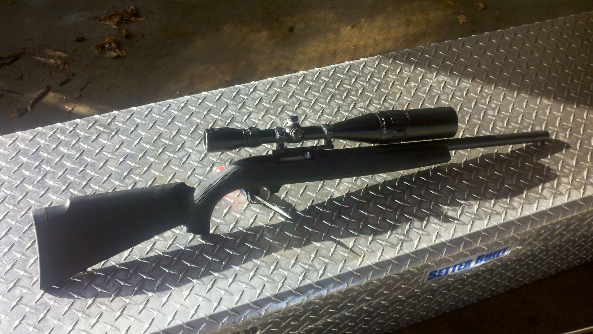 Hey guys, been a while. Have a ruger 10/22 for sale with a few mods on it as you can see. It has a butler creek bull barrel, butler creek stock, leupold scope mounts and a BSA Contender 4-12x scope with added sunshade. Buyer pays shipping. Have a few magazines for it, one ten that came with it and two butler creek 25 rounders, i'm sure if I look I can find more. Let me know! -Koda