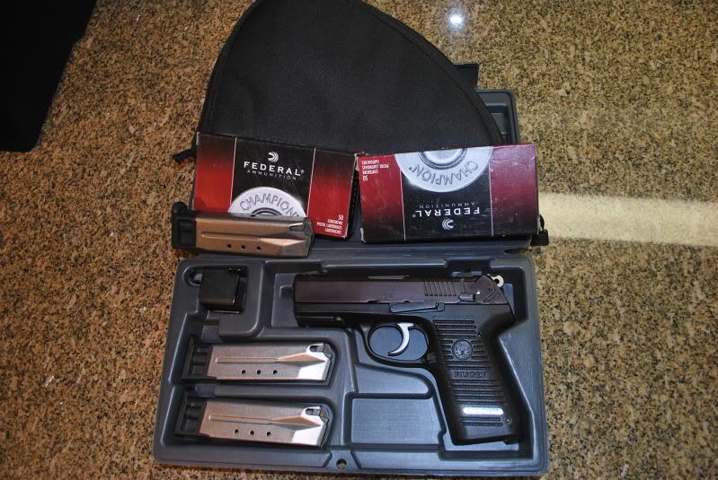 Blued P95 9mm with 3 Ruger 10 rd mags, factory loader, case and paperwork. Also have 100 rds of federal to go with it.