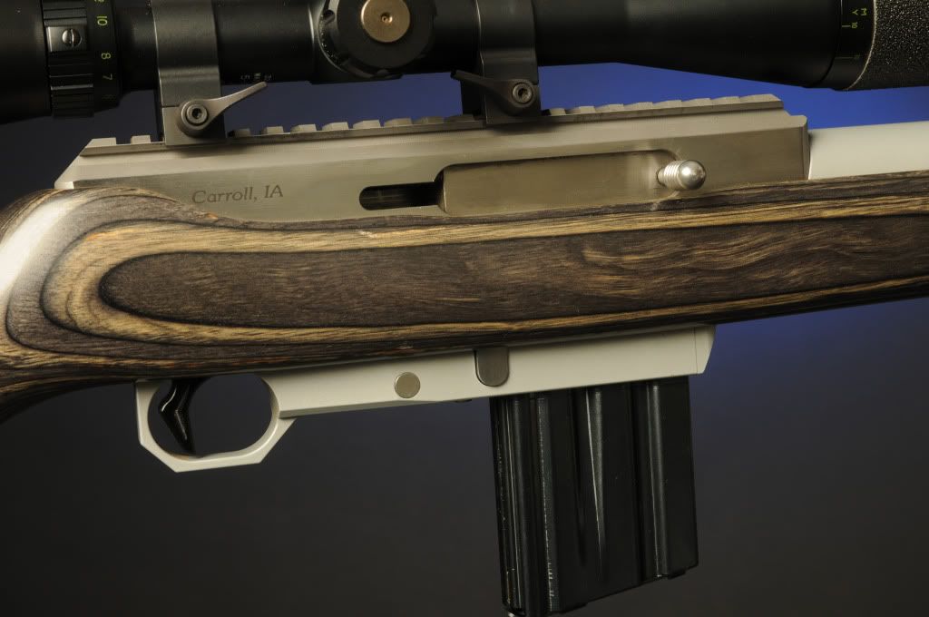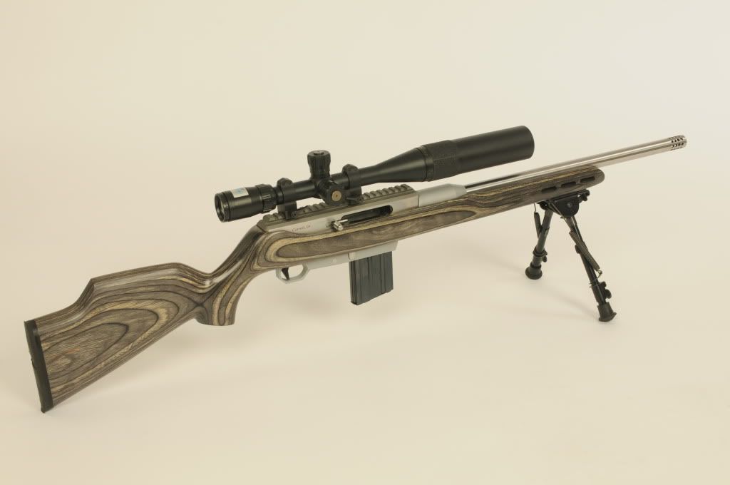 Accepts AR-15 magazines, 470 rounds down barrel, 32 hole compensator, extra bolt and firing pin($85 value), gray laminated stock