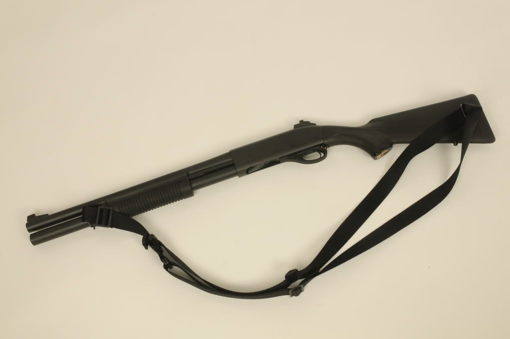 Wilson Combat /Scattergun Technologies 870 12 ga. Border Patrol model, NEVER FIRED,18 1/2 barrel, Speedfeed stock and forend, black armor Tuff finish, Wilson 3 point sling,2 round magazine extention,Scattergun Technologies Ghost Ring Sights