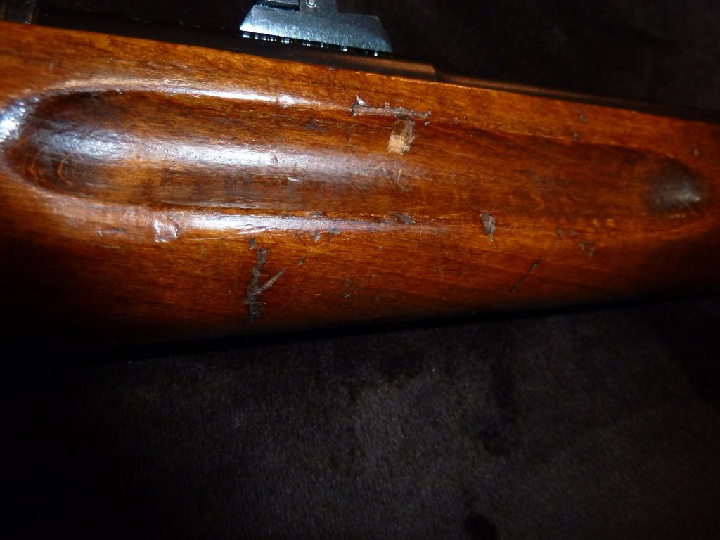 Here are some photos: The bluing is good, and the import marks are not obtrusive. The stock could use a refinish, and came with 2 area of blemishes. Both are pictured, one pair of storage dings on the right of the butt stock, and one cluster on the forearm. The one forearm ding may need a little filler, but most will sand/steam out.