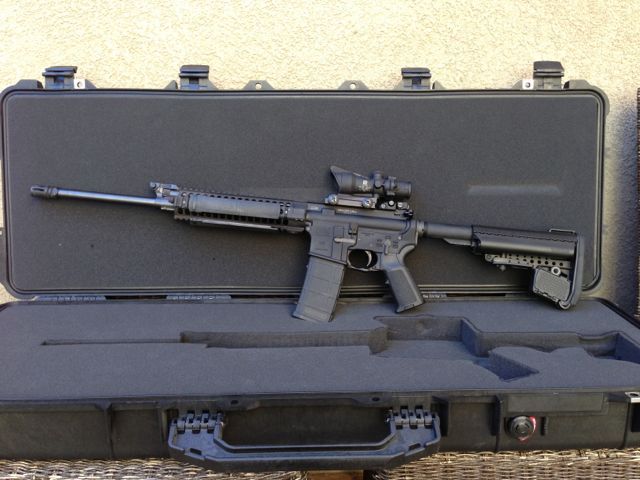 Other info:This comes with the Pelican case in pictures (a $200 value) and 4, 10 round magazines. The TA31F ACOG is for sale too but not included in this price. PM to ask for details. I'm not sure if I'm supposed to post that in this forum. I've had the rifle for about a year and half and fired it on a half a dozen occasion. It's probably had about 1500 rounds shot through it. I've always cleaned it after each session at the range and tried to keep it in very good condition. It has a bullet button installed of course as I live in California.